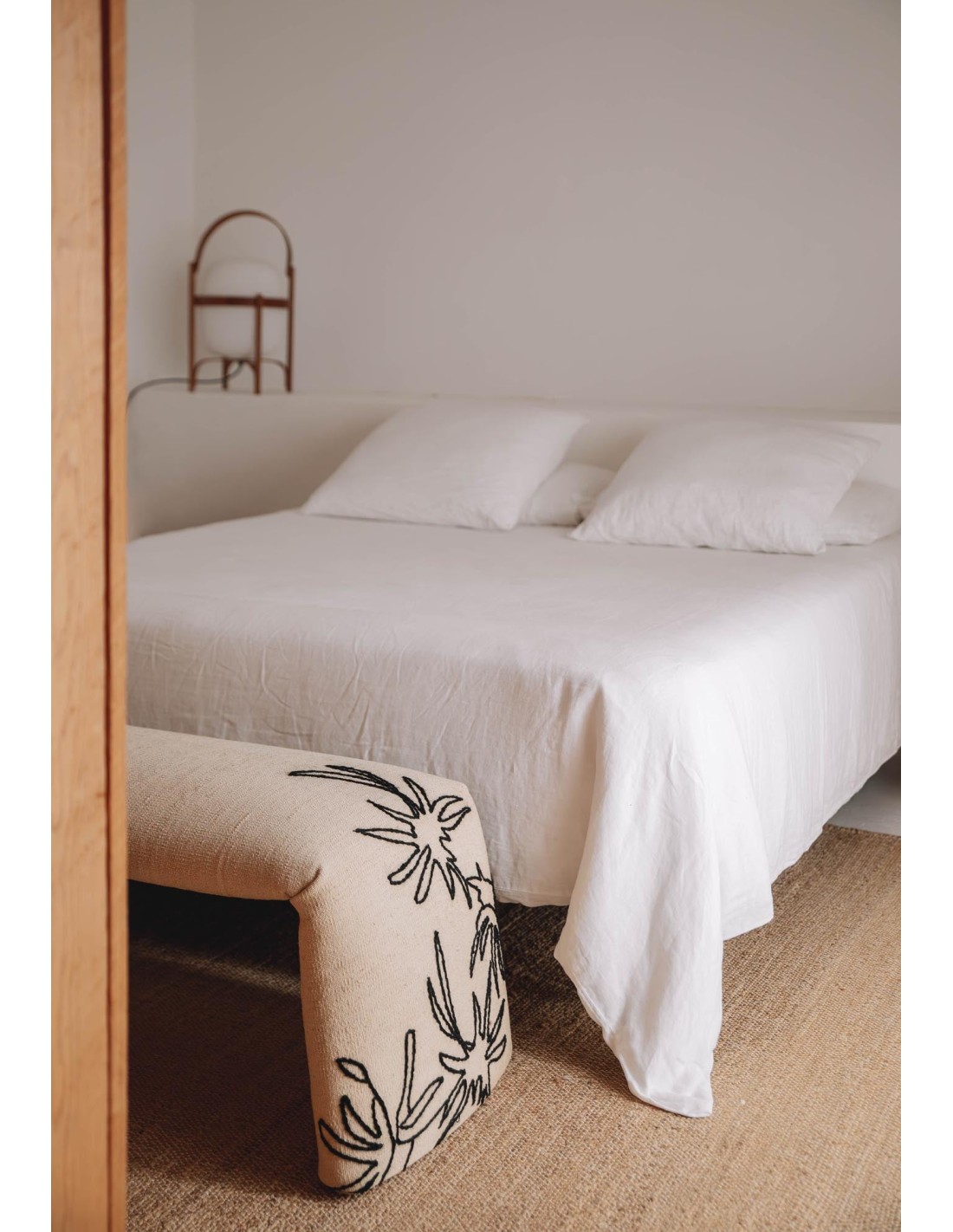 Manual weaving on a vertical or horizontal loom that plays with the intersection between weft and warp. Thin and light rugs that usually feature geometric patterns, as well as firm, resistant and without knots, which makes dhurries clean and easy to maintain rugs.Specifications Folded Pouf L Flowers Flowers