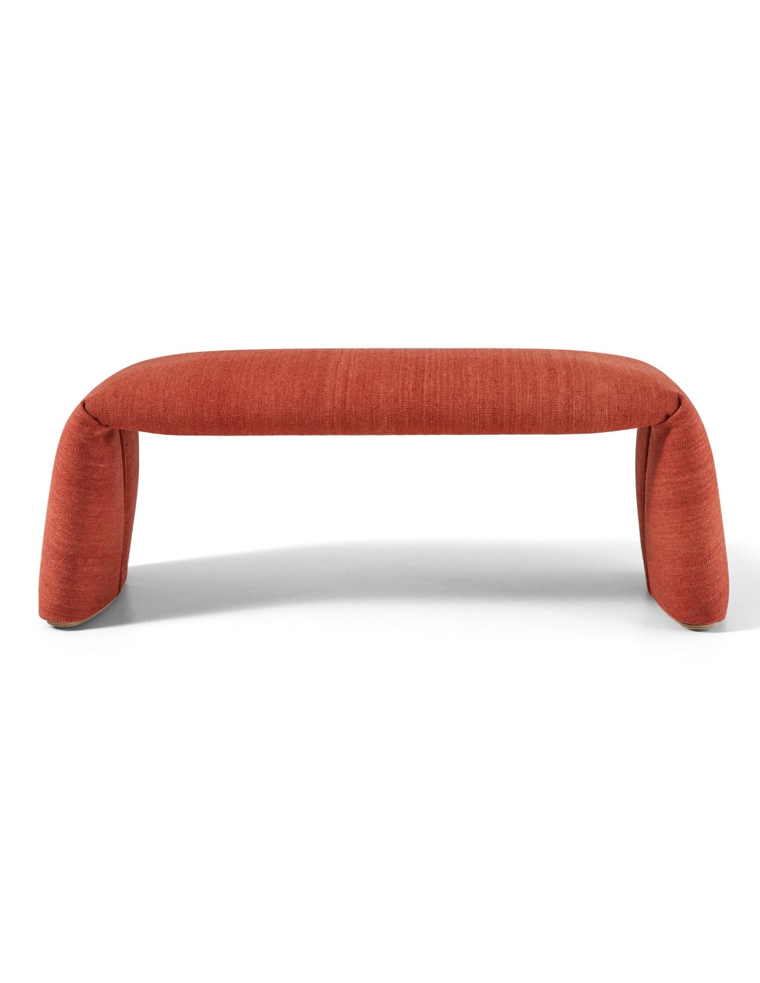 Folded, a bench that reinterprets the traditional concept of the rug, and challenges the traditional boundaries of design. Inspired by the essence of the carpet, this sculptural piece elevates its functionality beyond the floor, transforming into a practical and versatile furniture element. Both the upholstery design and the shape of the bench itself have been conceived as an inseparable duo, where functionality and expressiveness go hand in hand at all times.