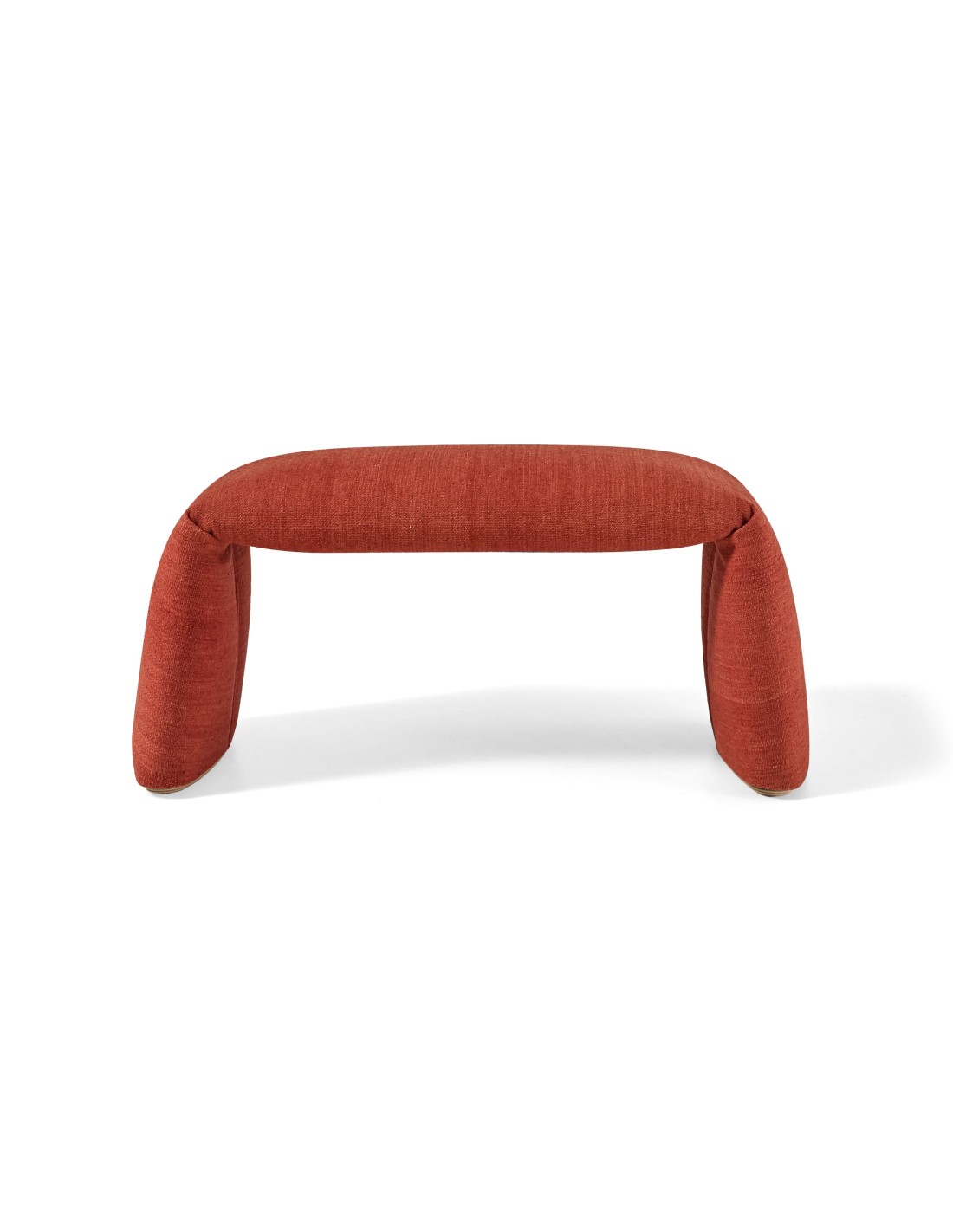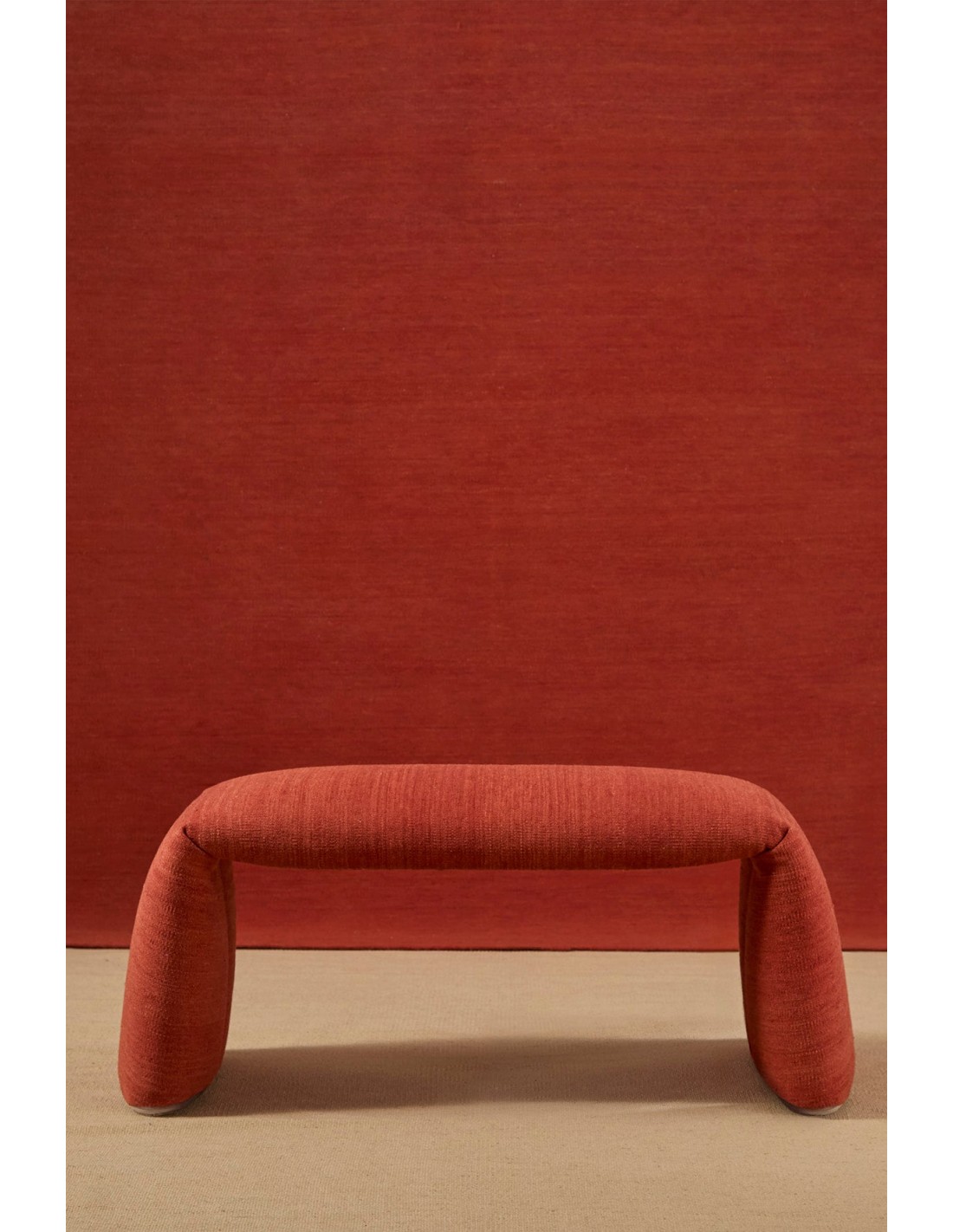 Folded, a bench that reinterprets the traditional concept of the rug, and challenges the traditional boundaries of design. Inspired by the essence of the carpet, this sculptural piece elevates its functionality beyond the floor, transforming into a practical and versatile furniture element. Both the upholstery design and the shape of the bench itself have been conceived as an inseparable duo, where functionality and expressiveness go hand in hand at all times.