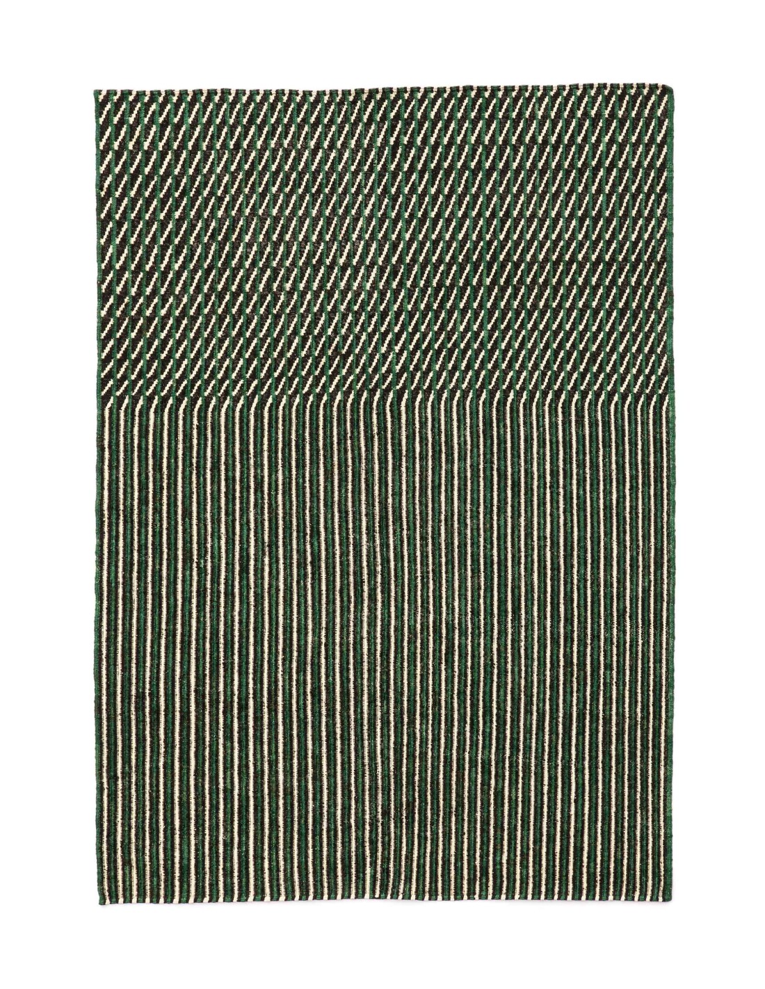 Manual weaving on a vertical or horizontal loom that plays with the intersection between weft and warp. It is characterized by being thin, hairless and with geometric motifs. High-density rugs, durable and resistant, even in the case of very light rugs.Specifications Blur Rug Green 250x350