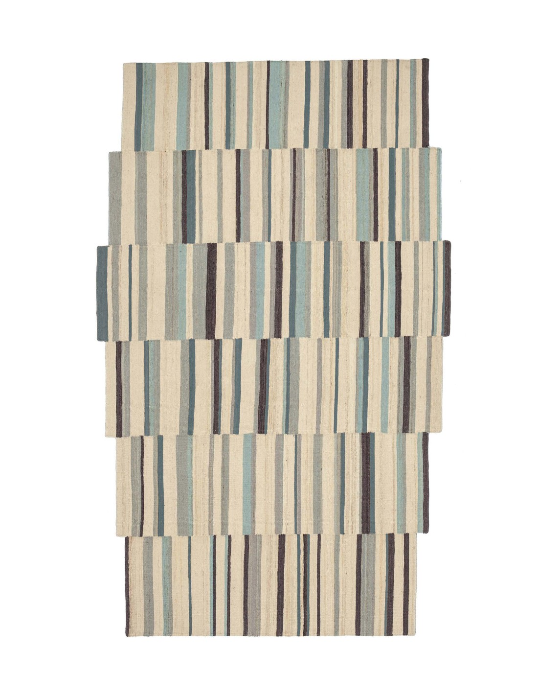 The Lattice collection is handcrafted using the ancestral, hand-loomed kilim technique and comes in four sizes, including a small, bedside version, and two colors; this one in shades of blue, red, green and cream.