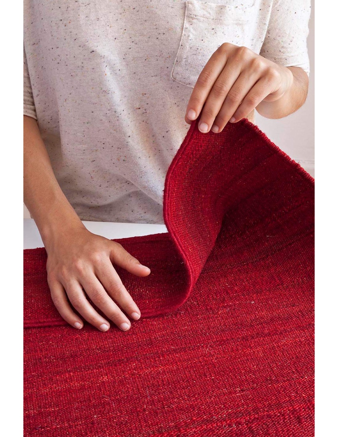 Manual weaving on a vertical or horizontal loom that plays with the intersection between weft and warp. It is characterized by being thin, hairless and with geometric motifs. High-density rugs, durable and resistant, even in the case of very light rugs.Specifications Nomad Rug Deep Red 170x240