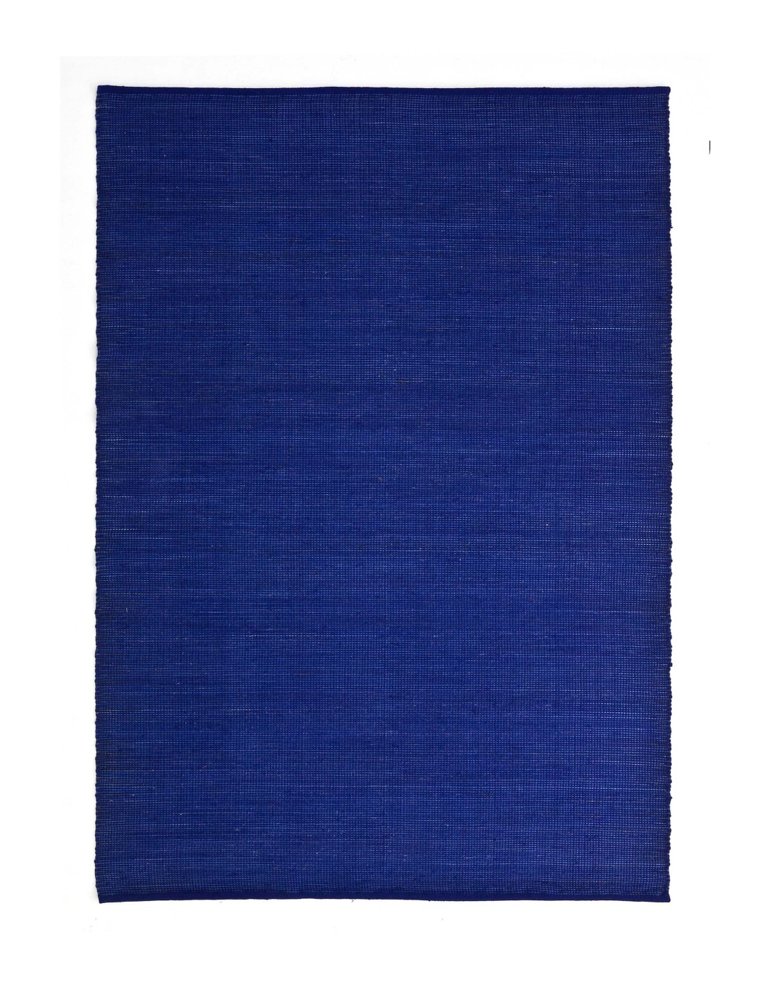 Manual weaving on a vertical or horizontal loom that plays with the intersection between weft and warp. Thin and light rugs that usually feature geometric patterns, as well as firm, resistant and without knots, which makes dhurries clean and easy to maintain rugs.Specifications Tatami Rug Indigo 170x240
