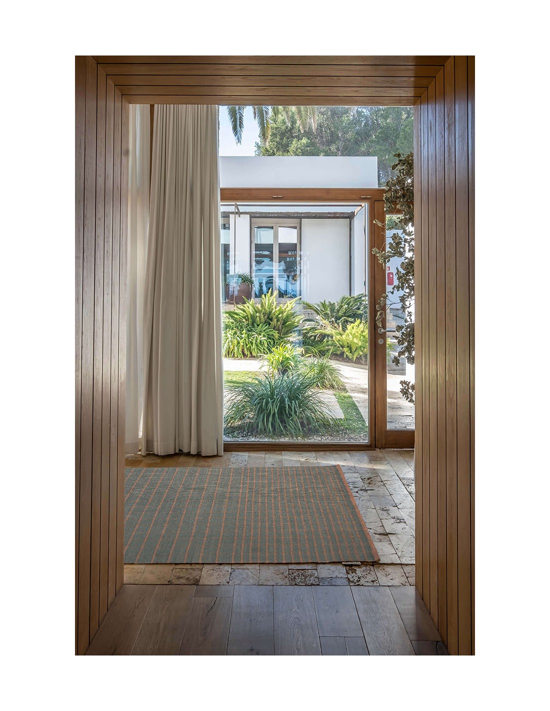 Manual weaving on a vertical or horizontal loom that plays with the intersection between weft and warp. Thin and light rugs that usually feature geometric patterns, as well as firm, resistant and without knots, which makes dhurries clean and easy to maintain rugs.Specifications Tiles Outdoor Rug 4 200x300