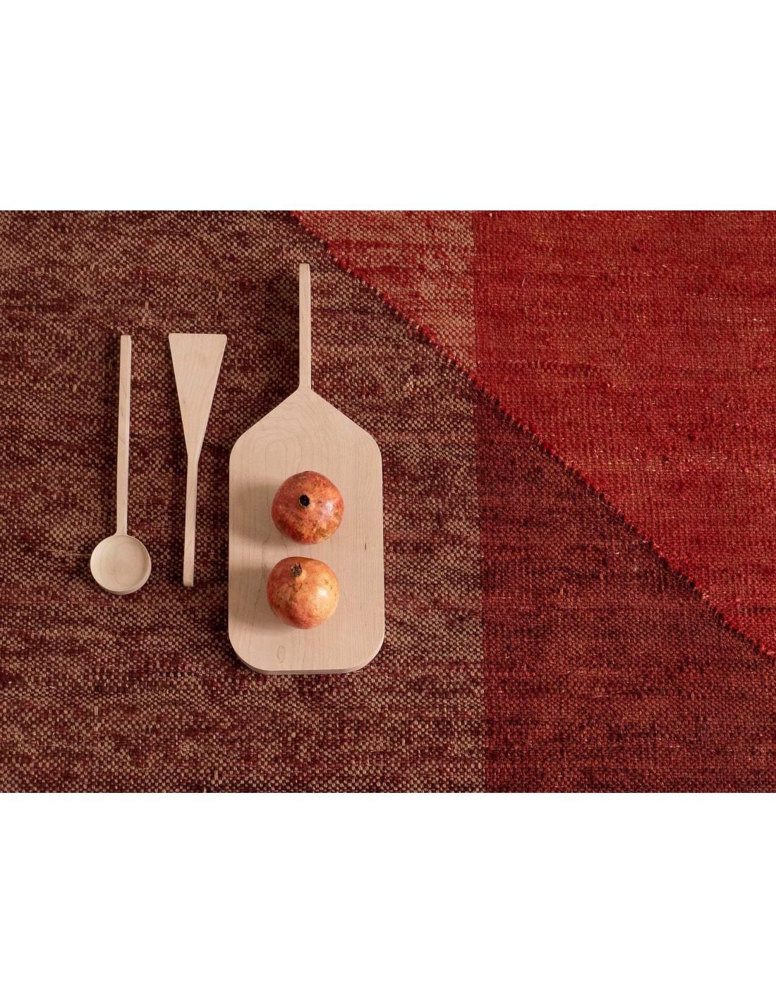 Manual weaving on a vertical or horizontal loom that plays with the intersection between weft and warp. It is characterized by being thin, hairless and with geometric motifs. High-density rugs, durable and resistant, even in the case of very light rugs.Caratteristiche del Capas Tappeto 1 170x240