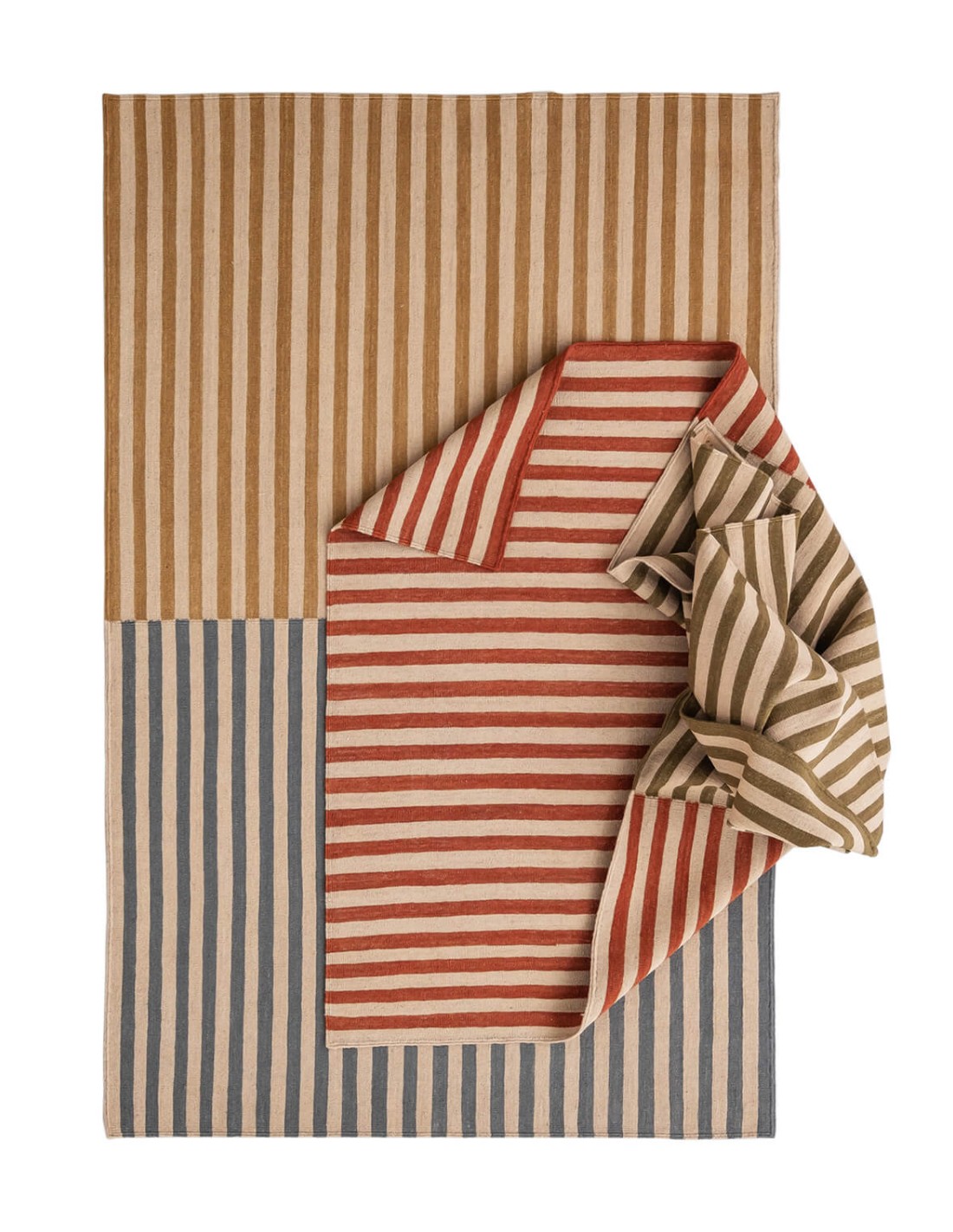 Colors that speak to us and bring serenity; friendly colors that come from nature and do not aim to be strident. The Ceras collection, designed by Nani Marquina, is the result of a comprehensive study of color through the manual process of tracing with crayons. An intuitive and instinctive process, a quest for balance using three colors and something as simple as drawing stripes in repetition. A straightforward code targeting the senses that combines with itself, with the objects around us, and even with people.