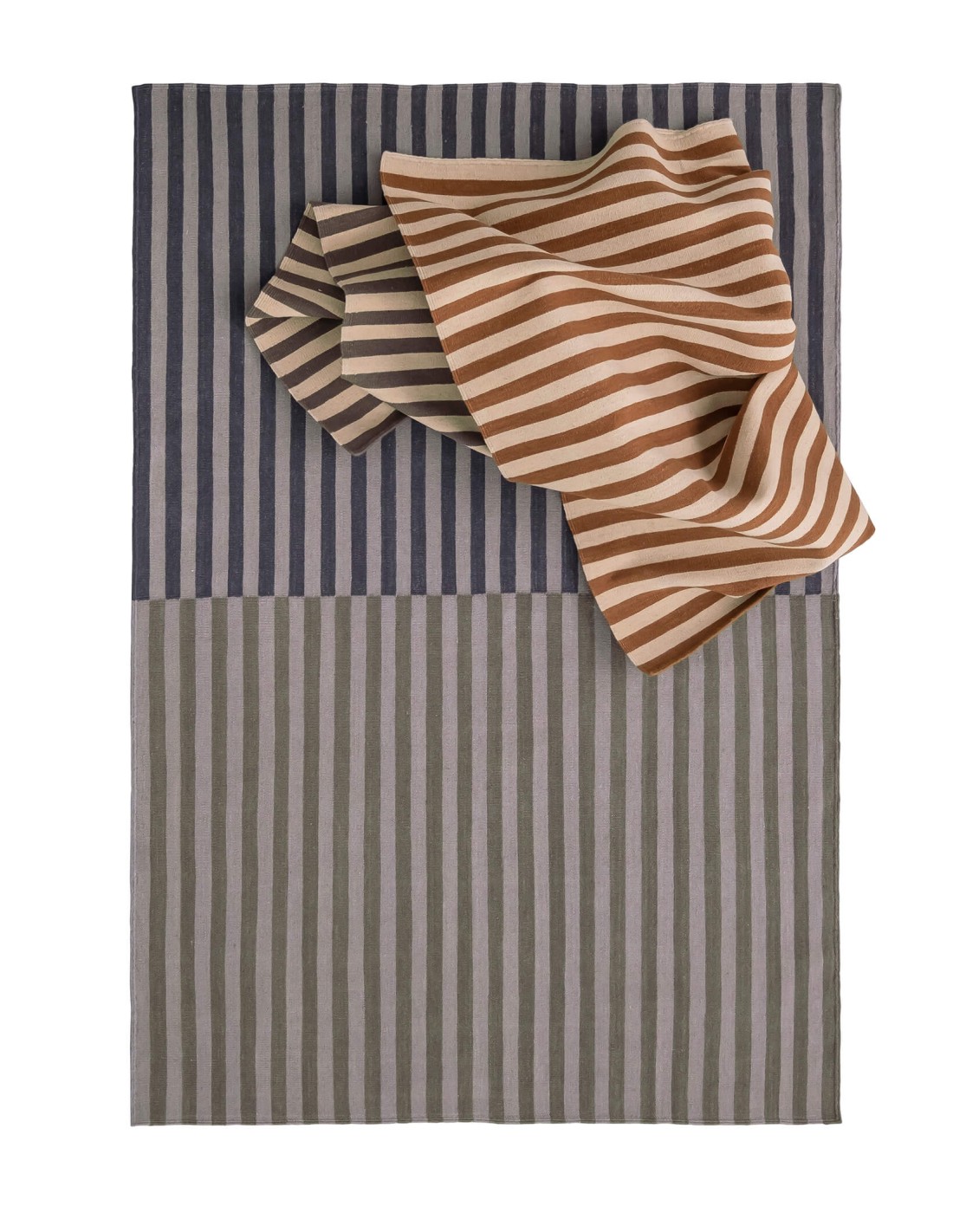 Colors that speak to us and bring serenity; friendly colors that come from nature and do not aim to be strident. The Ceras collection, designed by Nani Marquina, is the result of a comprehensive study of color through the manual process of tracing with crayons. An intuitive and instinctive process, a quest for balance using three colors and something as simple as drawing stripes in repetition. A straightforward code targeting the senses that combines with itself, with the objects around us, and even with people.