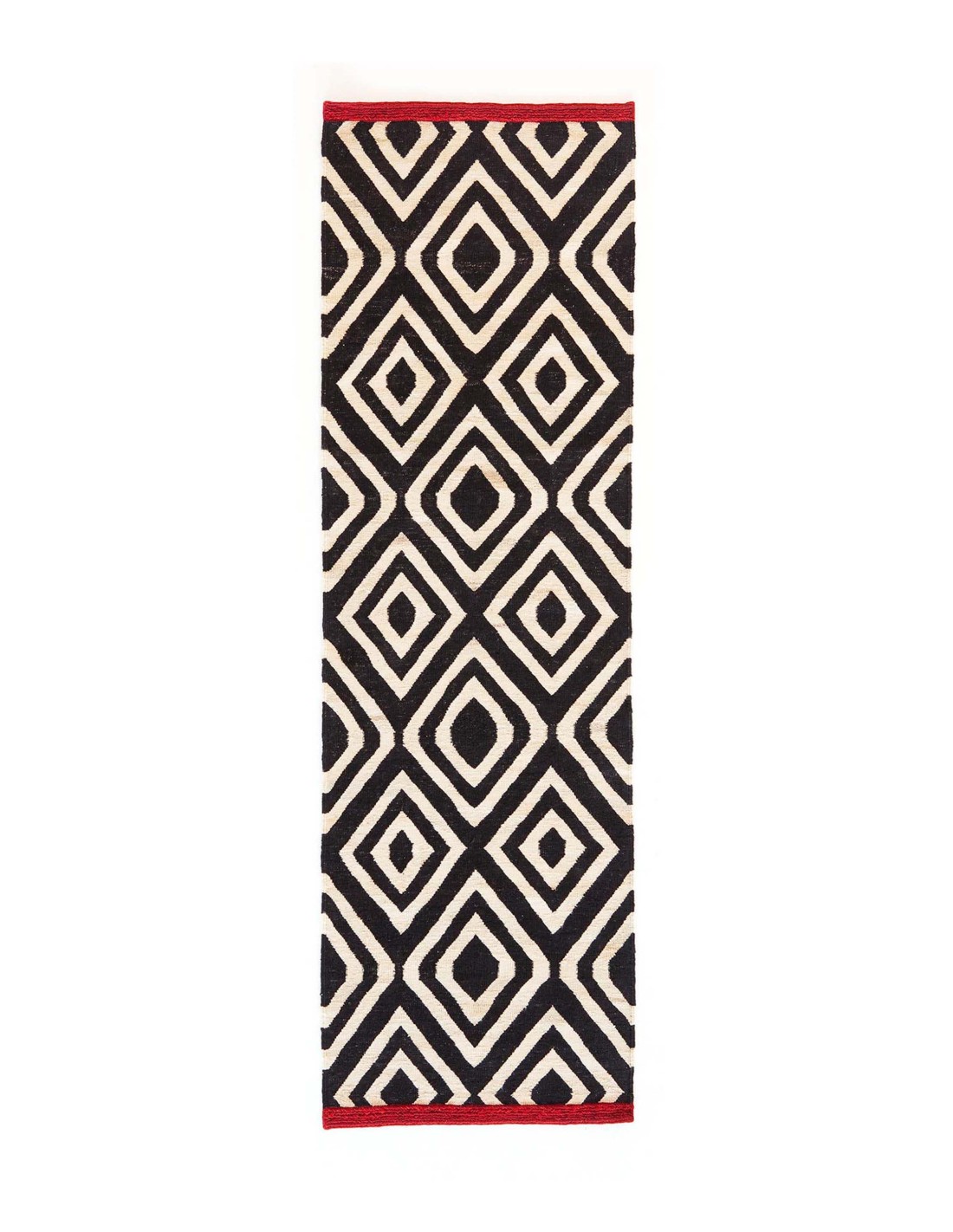 Manual weaving on a vertical or horizontal loom that plays with the intersection between weft and warp. It is characterized by being thin, hairless and with geometric motifs. High-density rugs, durable and resistant, even in the case of very light rugs.Caratteristiche del Melange Pattern 1 Runner L 80x240
