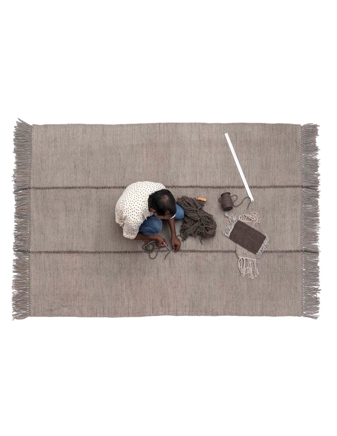 Typically, New Zealand wool is known to be the whitest, cleanest, purest and most natural in the world. Its softness is due in part to the altitude and the vegetation available to the herds. It is guaranteed to be cruelty-free.Lavorazione: Hand loomed Dhurrie