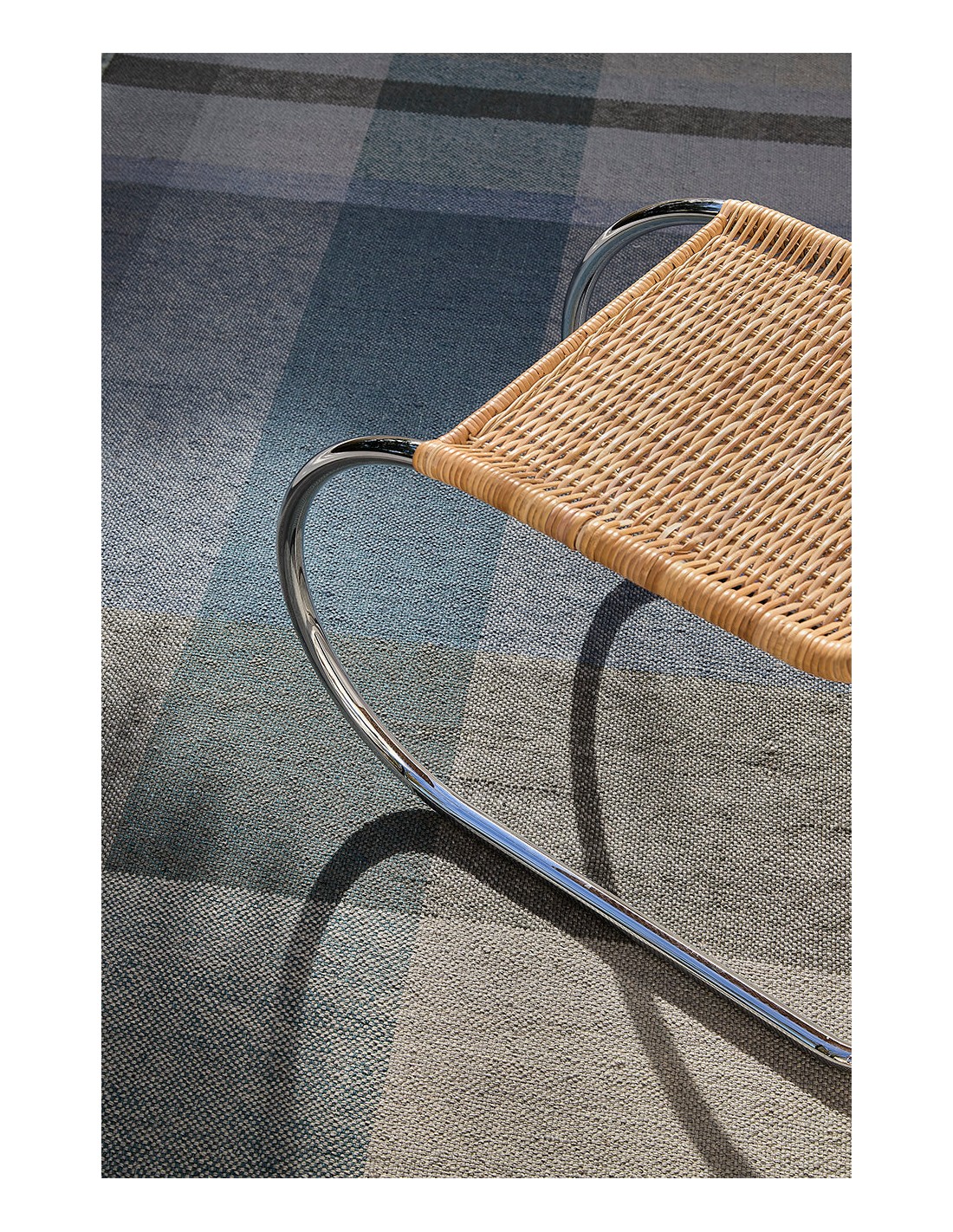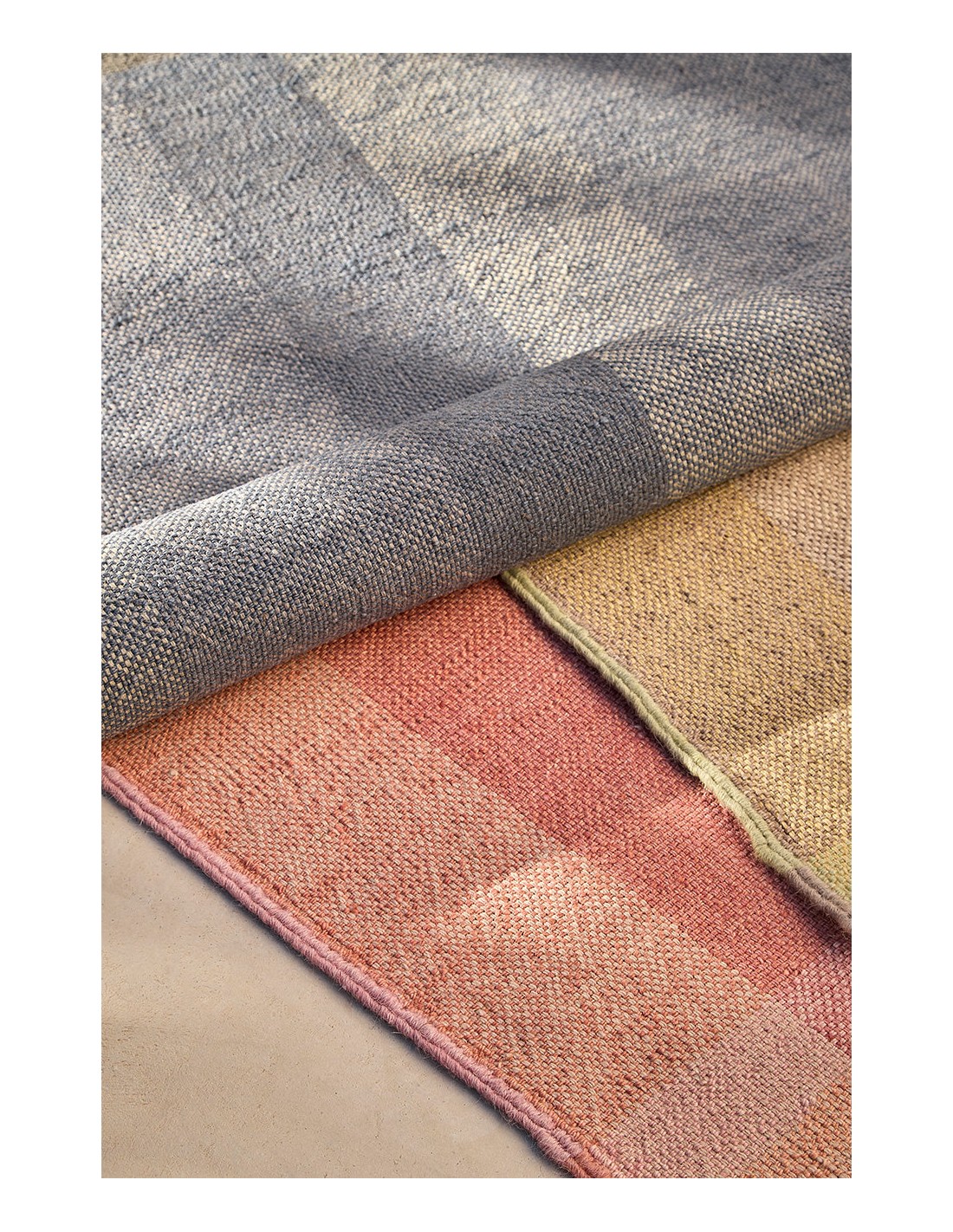 This collection presents a unique visual proposal, where a pattern of parallel and intersecting lines appears and disappears within the same color scale. The result is a monochromatic rug, yet with a depth and texture that evoke a contemporary tartan.