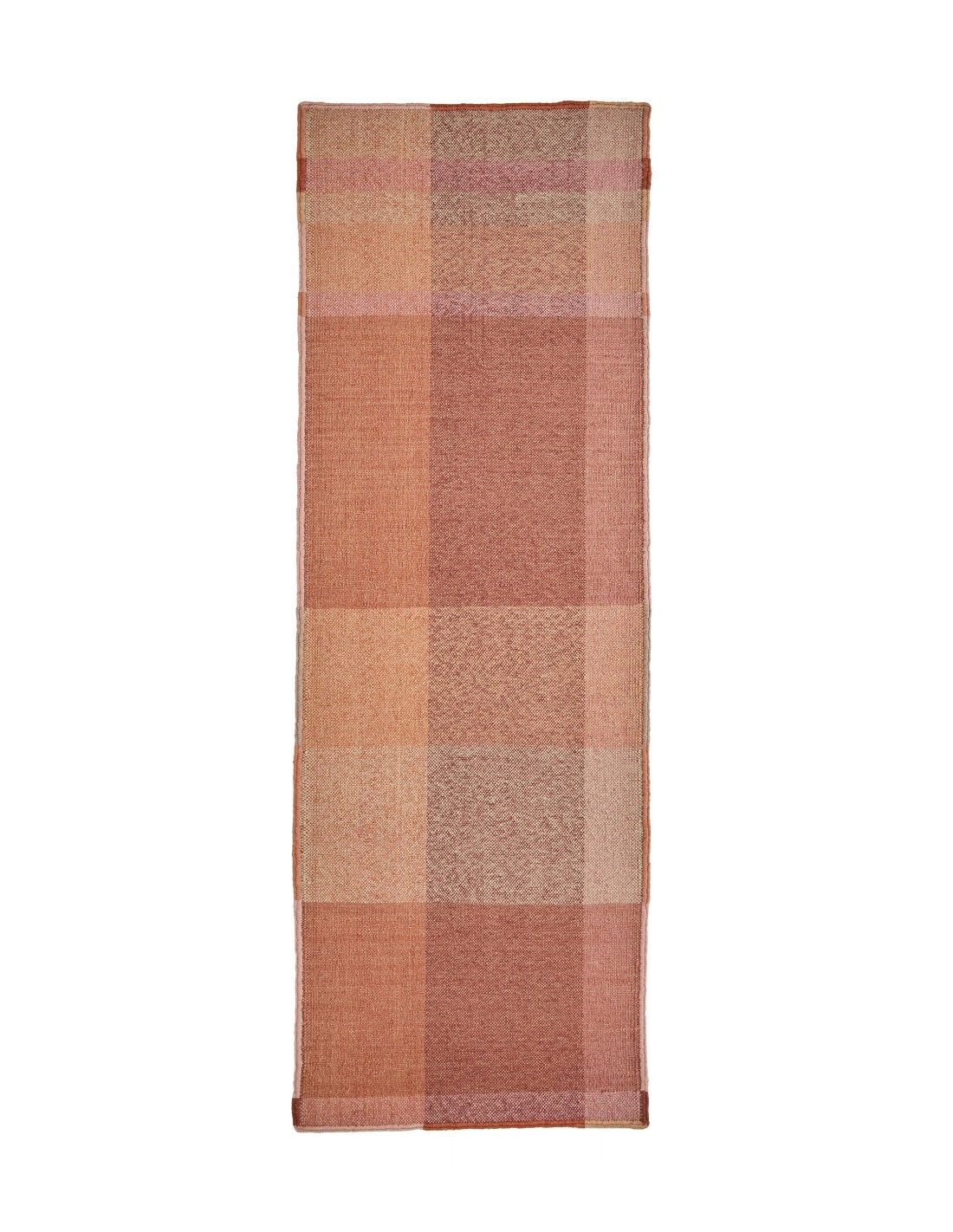 Manual weaving on a vertical or horizontal loom that plays with the intersection between weft and warp. It is characterized by being thin, hairless and with geometric motifs. High-density rugs, durable and resistant, even in the case of very light rugs.Caratteristiche del Nuance Runner L Tappeto coral 80x240