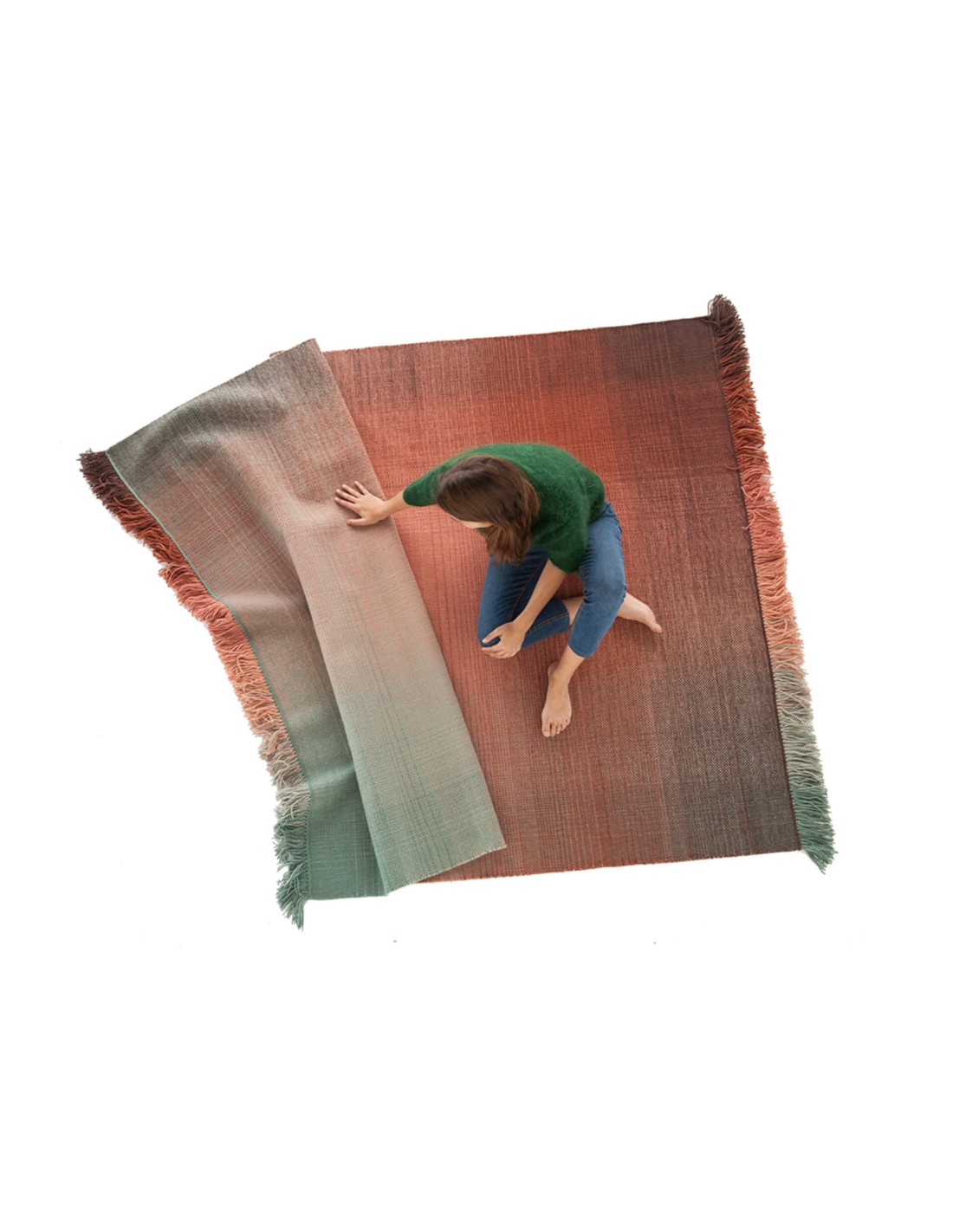 The Shade collection is inspired by magical moments in nature where colors melt and speak for themselves. Designer Begüm Cana Özgür emphasizes: “this is a handmade flat-weave rug that generates an incredible and well-rounded diffusion of color. The surface releases a sense of tranquillity and well-being that is balanced by the penetrating vibration of colors.”