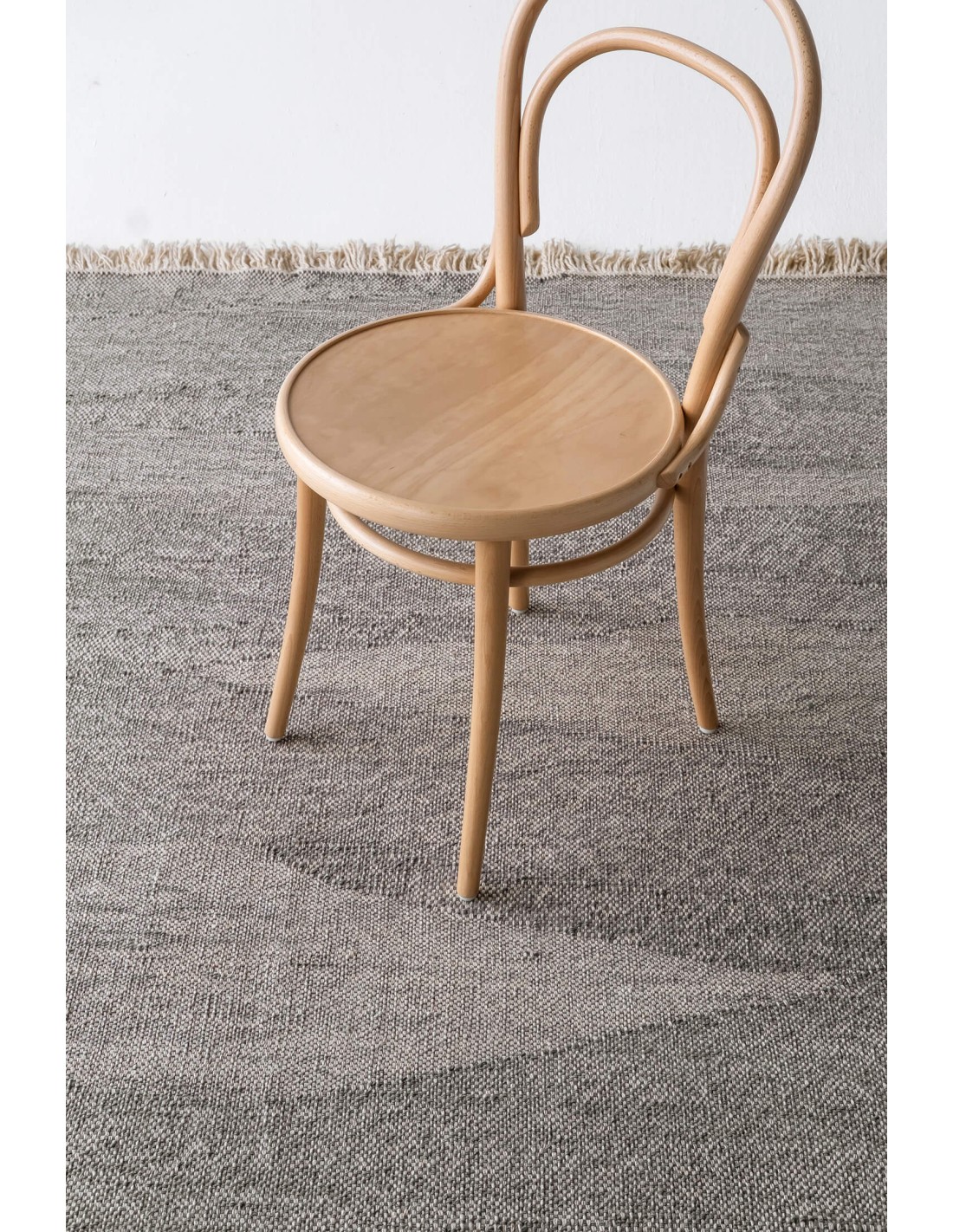 Telares has required a lot of groundwork and prototyping to find the desired texture. The result is a looser kilim of curved shapes, unlike traditional kilims that are usually geometric and rectilinear. It is hand-woven with Afghan wool. Its rustic appearance and the irregularities of the wool result in a unique rug where you can appreciate the beauty and authenticity of craftsmanship. Its curly fringes are noteworthy. Available in 5 colors, each model seeks a range of contrasts with the combination the characteristic natural color of the Afghan wool and a contrasted color.