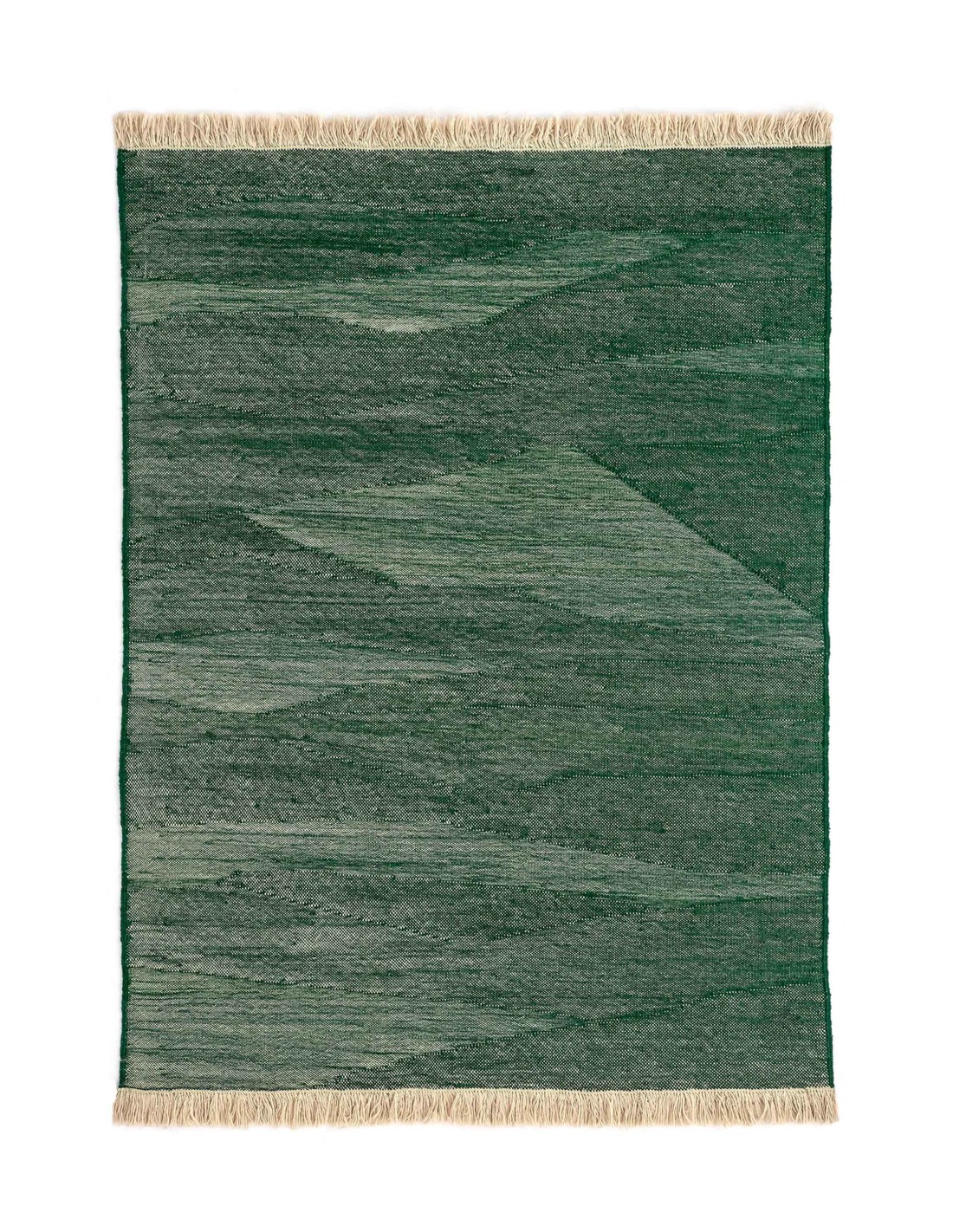 By combining the techniques used in kilims and typical dhurries, we have created a unique set of textures and rhythm through the variation and pressure of the fibers. The changes in the pattern, which are born from the tension applied between weft and warp, give the rug an appearance full of nuances, thus evoking the most primary manual work: the insistent trial and error process of the craftsman from which magical results arise.