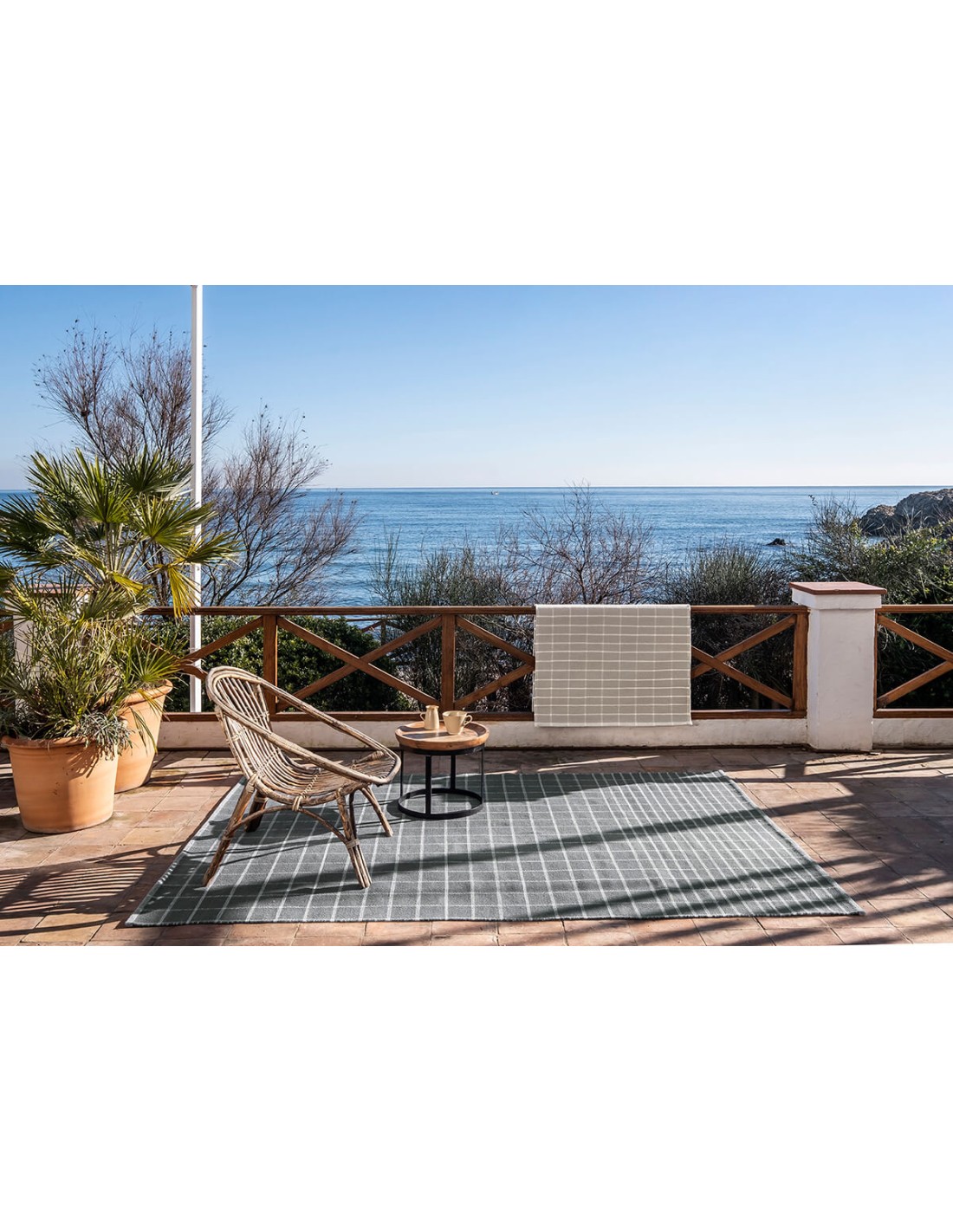 Manual weaving on a vertical or horizontal loom that plays with the intersection between weft and warp. Thin and light rugs that usually feature geometric patterns, as well as firm, resistant and without knots, which makes dhurries clean and easy to maintain rugs.Caratteristiche del Tiles Outdoor Tappeto 2 250x350