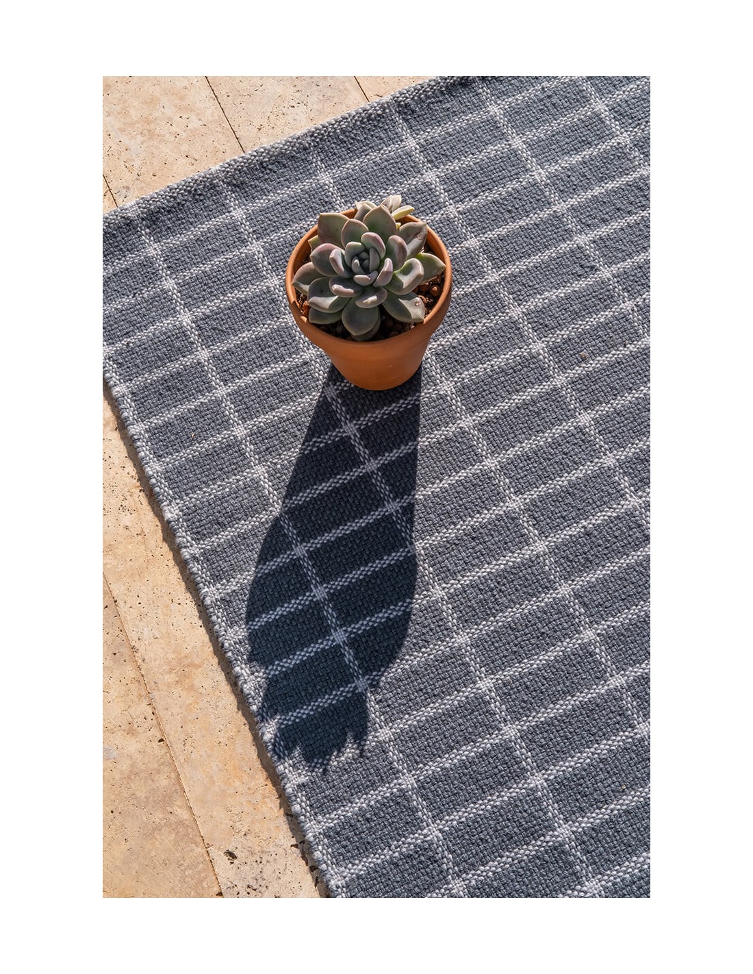 Manufactured using the hand-loomed Dhurrie technique and 100% recycled PET produced in India, Tiles rugs are ideal for places such as kitchens, bathrooms, children's rooms and/or outdoors. This material is very hard wearing, firm and easy to clean as well as having good thermal properties, making it a very useful and convenient collection for outdoor spaces too. At the same time, by using 100% recycled PET, a material produced through the recovery and reuse of polyethylene waste, we minimize the impact caused by the burning of plastic bottles in India.