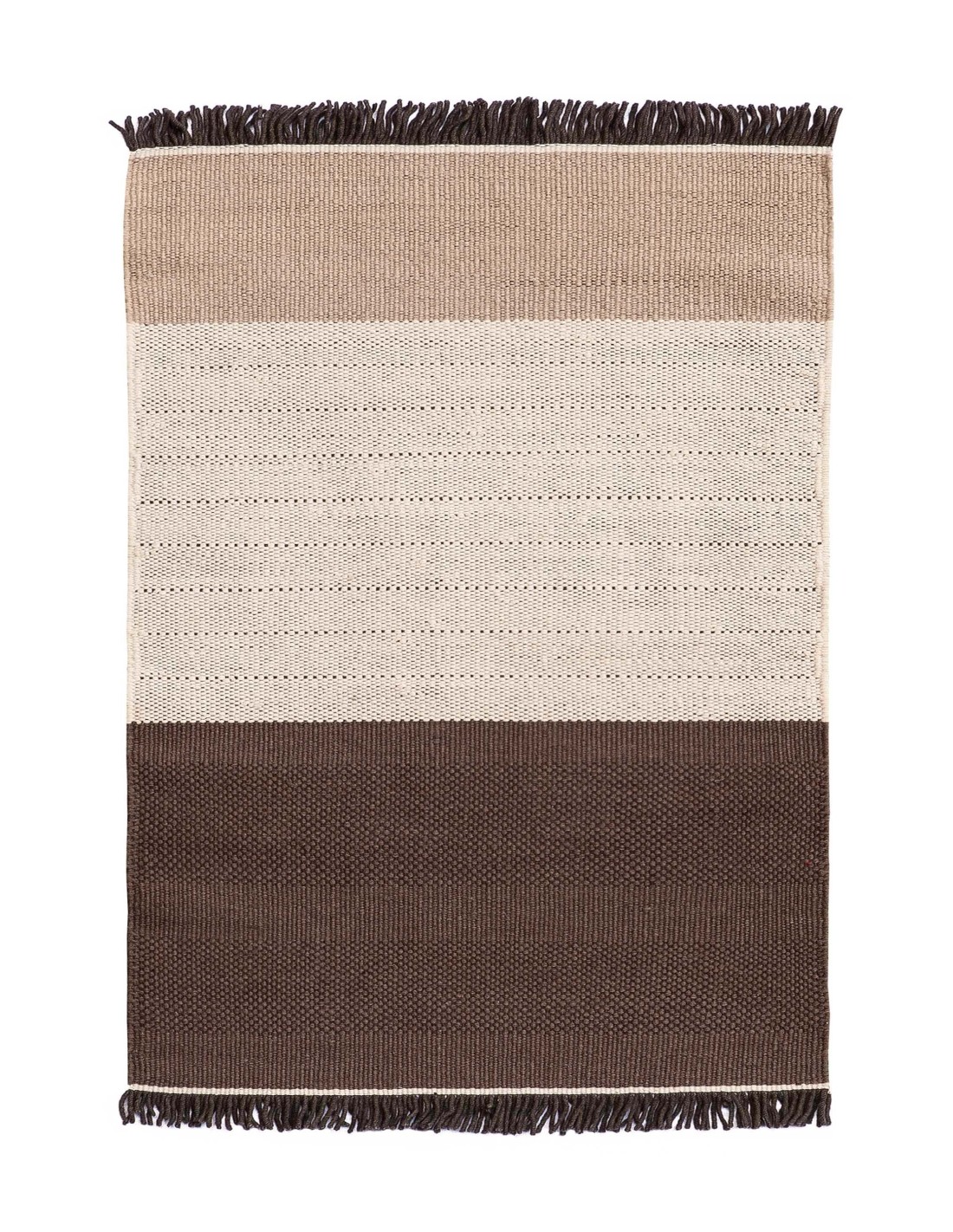 Manual weaving on a vertical or horizontal loom that plays with the intersection between weft and warp. Thin and light rugs that usually feature geometric patterns, as well as firm, resistant and without knots, which makes dhurries clean and easy to maintain rugs.Caratteristiche del Tres Stripes Tappeto Chocolate 250x350